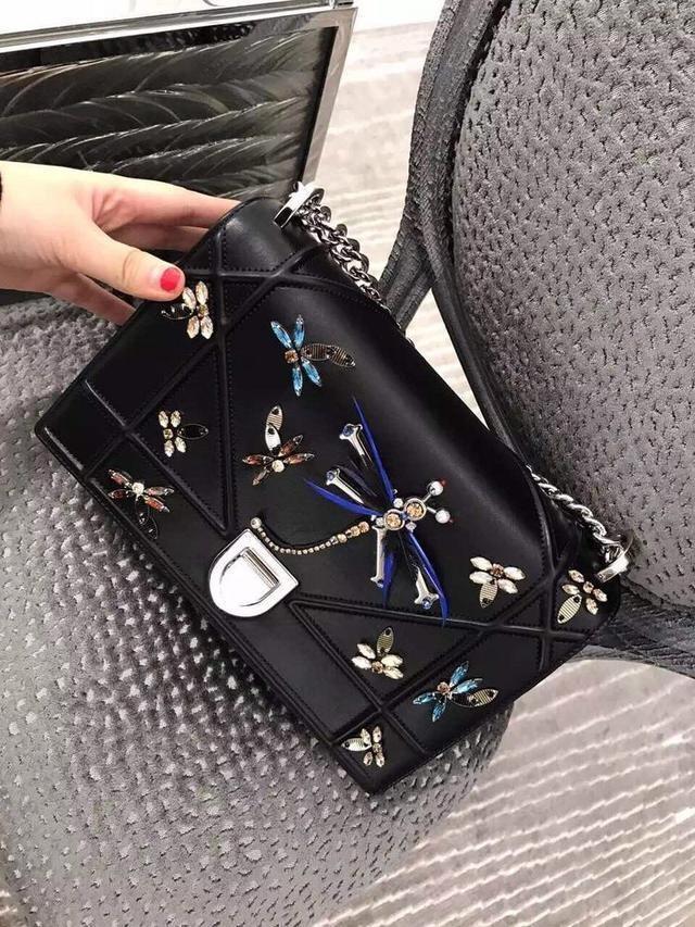 比如这只蜻蜓的Diorama,其实蜻蜓和优雅很难沾边,在包包中这个元素用得也不多,但是只要Dior出手,普通的小动物也能精致时髦,水晶、钻石、羽毛配上Diorama简洁大气的包身,就是独属于你的限量美包~