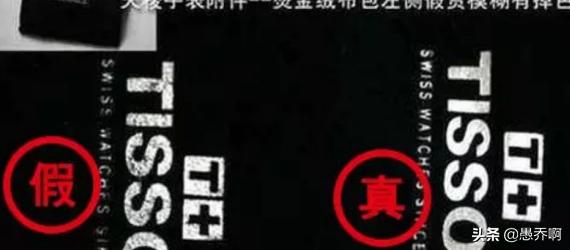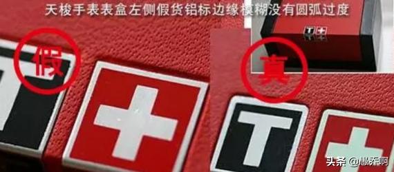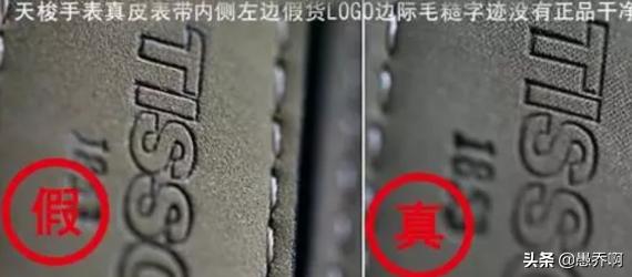 下面的图片是真假天梭的对比图,左侧假表的皮带毛糙,字迹模糊,而相比之下右侧的表带则干净清晰。