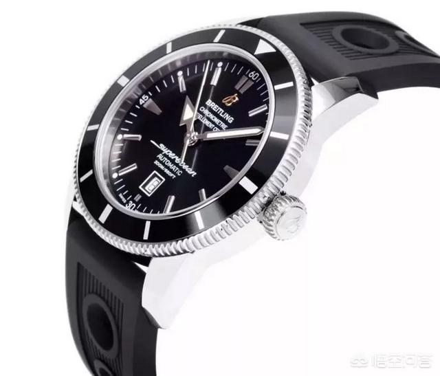 超级海洋算是百年灵性价比比较高的系列,走的是年轻运动风,夏天戴非常应景。这款超级海洋在功能和设计上,都与上世纪五十年的的表款相呼应。黑色单向旋转表圈、黑色干练表盘、黑色橡胶表带,一酷到底。