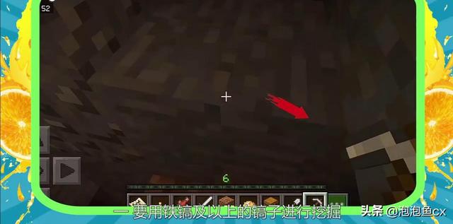 1、一定要用铁镐以上的镐子进行挖掘,因为铁镐才能挖到铁矿、煤、青金石、红石和钻石。