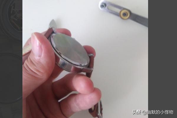 1、首先我们要做的肯定是先打开手表的后盖,而这里介绍两种最常见的手表后盖打开方式,一种是直接撬开的,这种手表的后盖上明显有个突出区域,用刀片等尖锐而有薄的金属物撬开即可,这种手表的后盖肯定不是正圆形的,往往出现一个突出的部位。