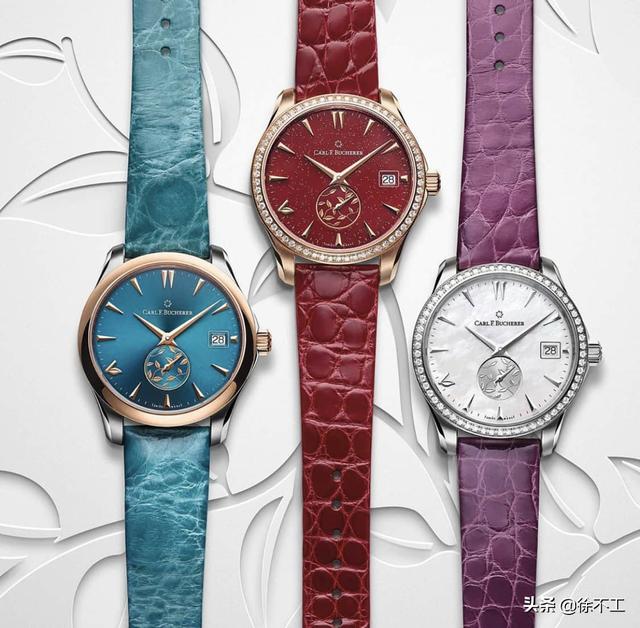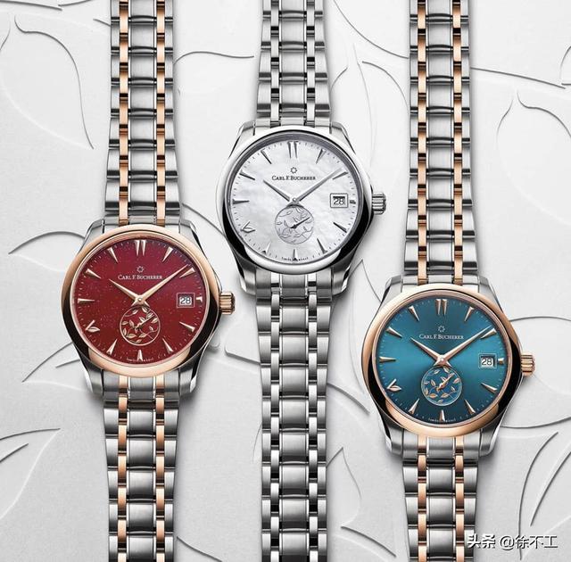 其中三款型号搭配抢眼鲜明的红色洒金表盘,另外三款型号以蓝绿色为主调,冷暖色彩组合激发大胆鲜明的魅力,配上金钢双色表壳或精钢表壳,颜色浓厚的表盘配同色系鳄鱼皮表带,轻易吸引欣赏目光。最后三款型号则搭配珍珠贝母表盘与精钢表壳,并可选配紫色鳄鱼皮表带或运动型精钢链带,其中一款的表圈镶嵌62颗美钻。这个系列的表款绝适合不同女性的审美~