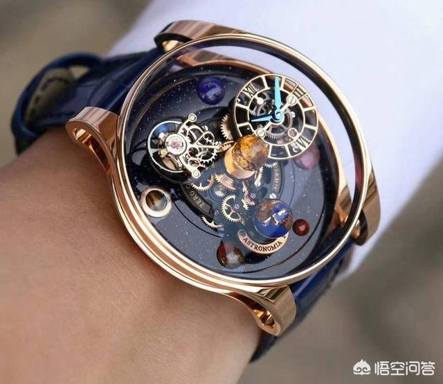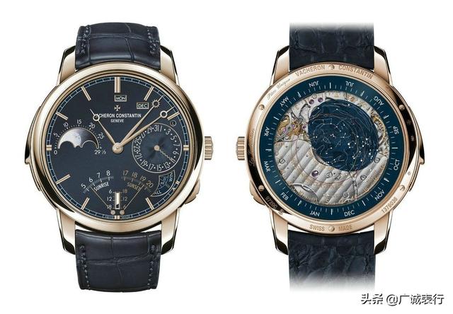 手表怎么能少了江诗丹顿,这款超卓复杂天文报时“乐之颂”腕表公价1735个W,拥有19项复杂功能,可以显示标准时、太阳时、恒星时等多种天文时间。灵感源自以极致纤薄而闻名的品牌自制1731三问报时的机芯,延续了品牌打造超薄机芯的传统,经过重新设计,融入天文复杂功能,背面令人联想到繁星点点的浩瀚夜空,如星辰般璀璨浪漫,很有艺术美感。