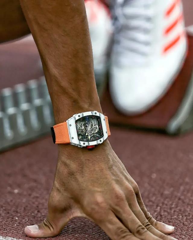 理查德突出的运动精神是,更轻毫无负担的科技制表精神,更精准所以在大量采取和田径、赛车、运动员合作,因为在赛场上,佩戴腕表需要贴合皮肤,不能对发挥产生阻碍,哪怕有一个细节出问题都会影响到比赛成绩,保证毫无负担。另外就是重量,像奥运会这样高手间的竞技非常严谨,成绩精确到了小数点后两位数,任何身上的重量都可能影响到成绩那精准,甚至在竞技中腕表有可能给运动员造成的意外困扰,即便在这样的情况下运动员依旧能坚持佩戴理查德出赛也说明了他们之间的默契合作和对腕表的认可。