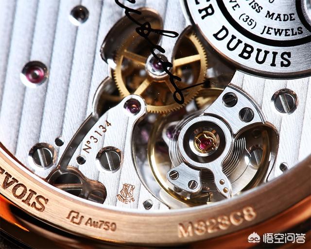 翻转至背部,将能更清楚看到 RD620 机芯的主结构,例如擒纵摆轮 ( 摆频为每小时 28,800 次 ) 及厚实的微型上条陀,陀上刻印有品牌及机芯的名称、宝石数目及「 100% SWISS MADE 」等字样,晃动腕表即能看到其运转。机芯夹板则以日内瓦波纹为主要装饰,日内瓦印记就在擒纵系统旁,动力储存为 52 小时。另外,你会看到罗杰杜彼先生的签名看似浮于机芯上 ( 其实是印于蓝宝石水晶上 ) 。