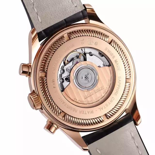 腕表内部搭载了Caliber AN 4500-2892 TND/TNK机芯,机芯采用了精细的打磨技术制造,旋入式表底同时也用了扭索纹装饰。腕表底部是背透设计,可以看到机芯的精密运转。