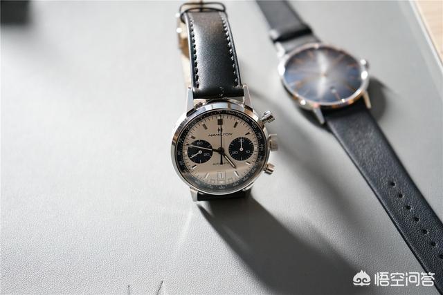 这次汉米尔顿推出的计时码表让我的印象也很深。美国经典系列的臻薄自动计时码表采用 “熊猫盘”的设计,一款白色表盘,一款蓝色表盘,直径40毫米,看着舒服,上手感觉也不错。