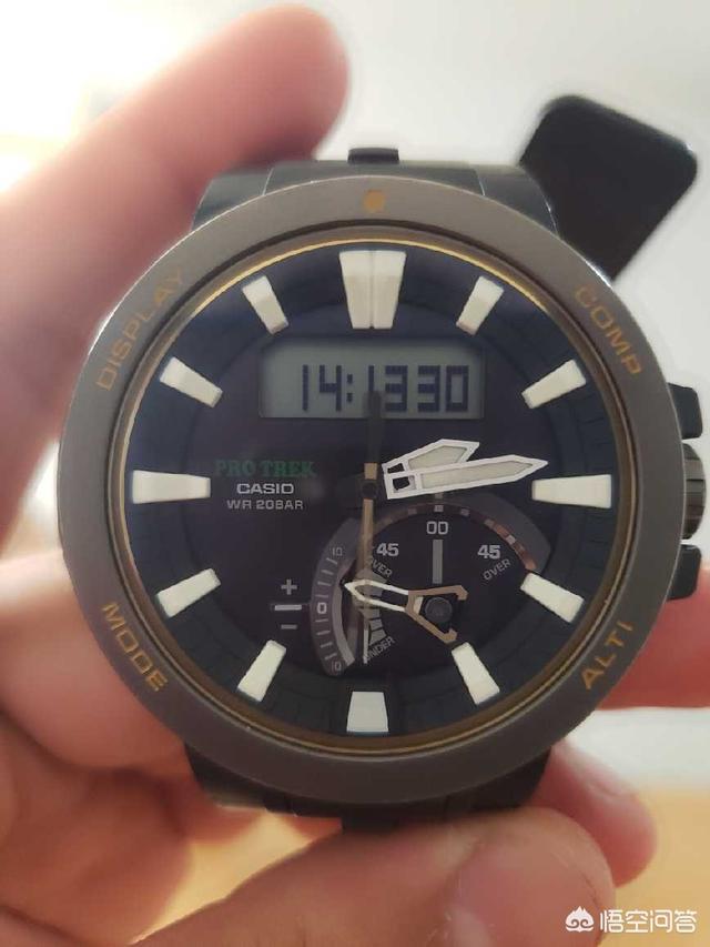 卡西欧二千以上价位的基本上都是太阳能+电波表。电波用起来很省心,每晚12点自动收波对时间。可以说一秒不差。二个电波表的走时可以说一模一样。另外还有高度,气压,指南针,闹铃,计时功能,锦上添花啦。用的不多。卡西欧的航海,登山,泥王,空霸。功能都一样,所有就买自己喜欢的款式就行了