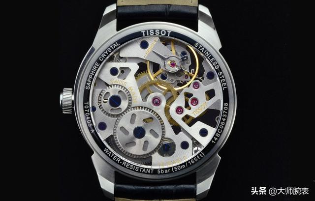 天梭天匠镂空运用机芯夹板来做表盘,这就需要对机芯进行整体的镂空设计,使用的机芯原型是6497手动ETA机芯。这款机芯属于经典老机芯,沛纳海也一直在用,是Unitas机芯厂研发,后被ETA收购。