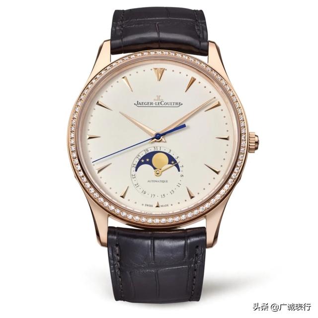 白色表盘上硕大的罗马数字刻度,醒目蓝钢指针,轨道式时间刻度圈,妥妥又是一枚复古表款。玫瑰金表壳搭配路易斯安娜短吻鳄鱼皮,复杂功能之外材质也丝毫不懈怠。