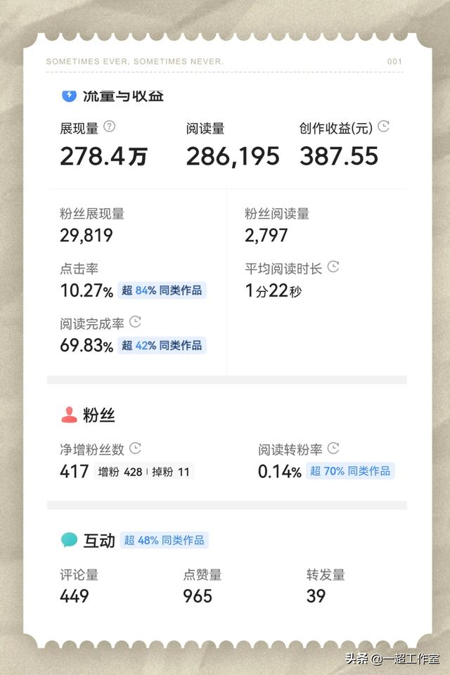 4)文章内容关键词布局。好的标题,相应的得有好的输出内容相匹配,如果纯粹的做一个标题党,用户点击进去阅读感觉受骗,文章不会阅读完立马关闭走掉,也不会写评论互动,更不会分享转发收藏。文章阅读完成率,评论数,转发收藏数,这些是系统评论一篇文章好坏的因素。互动越高,判断用户越喜欢,文章质量越好,那么系统第一次推荐给这些用户表现很理想,就会再次扩大人群推荐文章。反之,如果第一次推荐不理想,那么系统就会减少推荐量。文章内容关键词如何布局呢?比如那我写自媒体来说:我标题里面没有提到其他的自媒体的关键词,例如今日头条、搜狐自媒体、企鹅自媒体、大鱼号、一点资讯、网易自媒体等其他自媒体名,但是我文章当中提到了这些关键词,那么系统就会根据这些关键词把文章推荐给匹配到关注改关键词的用户阅读。文章里面提到的相关类关键词越多,推荐的人数就会越多。