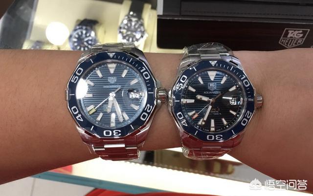 和劳力士水鬼相比防水深度都一样,尺寸大小也差不多,有些比潜航者大,泰格豪雅竞潜的大一些的尺寸有43mm的,也有41mm的。而水鬼的尺寸是40mm的,和这个41mm可以说几乎是一样的了。