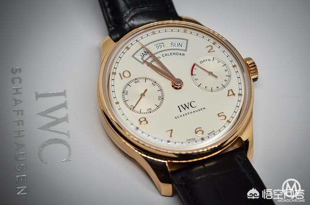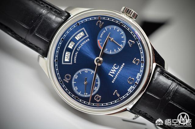 我们来看看新版本的万国葡萄牙系列年历表款,它增加了一些有趣的东西:一年一度的日历,在葡萄牙语的7天内智能地整合。因此,我们发现了相同的表盘布局,小秒针位于9点位置,动力储备指示器位于3.面部也是99%相似,这些典型应用的阿拉伯数字,表盘周围的轨道和叶子指针。它还保留了葡萄牙系列的经典设计,大表盘,左右对称排列的小表盘设计。