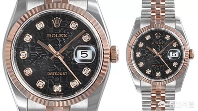 此款蚝式恒动腕表采用间金设计,黑色表盘上有独特的劳力士暗纹设计。钻石时间刻度搭配玫瑰金大三针。三点钟位置日期显示,并在日期显示处做了放大处理,读时更清晰。36mm表盘尺寸适合大部分亚洲人佩戴。