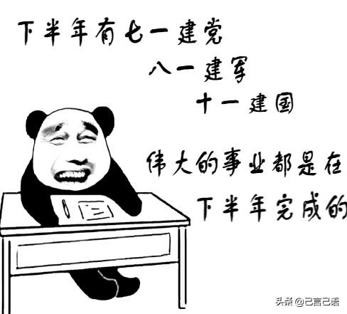 10..如果你上半年混的不好,千万不要灰心。因为七一建党,八一建军,十一建国。伟大的事业都是在下半年完成的,上半年不是三八,就是清明,不是五四,就是六一,一点都不成熟。