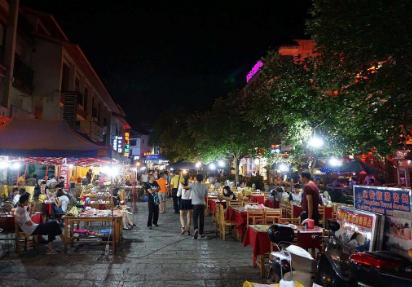 桂林的夜市挺热闹的,除了卖烧烤油茶,还有商贩摆摊卖东西,卖水果蔬菜、衣服裤子、生活用品,样样齐全,应有尽有。晚上饭后出来散步,人来人往,满街吆喝声,热闹非凡。桂林夜市摊位挺多的,吸引众多游客前往的夜市当然属尚水街了。一到晚上,本地人和外地人纷纷来十字街逛逛,买买衣服,逛逛鞋子,逛累了便去尚水街吃夜宵,已经成为一种时尚潮流了。