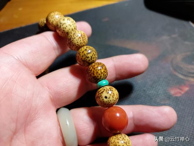 1、新串上手。星月菩提刚开始盘,最合适用搓澡巾或者手套盘玩,盘玩周期在一个月左右。不要着急手盘,新做好的星月菩提,表面抛光不到位,上手很容易积灰变脏。