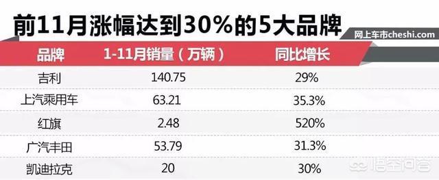 数据统计显示,2018年前11月同比涨幅超过30%的车企有5家,吉利遥遥领先。