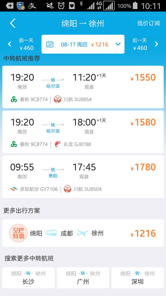 有是有但是需要中转。 小编专门查了一下,如果想到徐州,从绵阳出发的话,建议先去成都,绵阳到成都动车40多分钟就到了,然后从成都的双流机场出发就可以直达了,这样的成本算下来是最低也是最节省时间的,不用你跑到什么哈尔滨那些去中转,费时费力还费钱,不如直接从成都出发。现在成都正在修建直达机场的地铁,相信未来不久我们就可以做直达去机场了,这样一来就更加方便了。 |