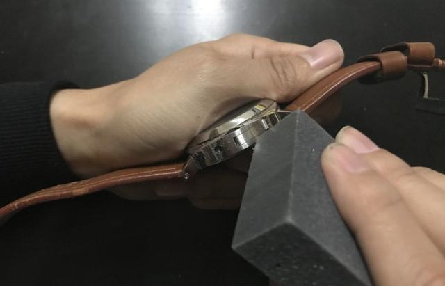 用抛光布擦一擦,然后表壳抛光的部分会很亮,划痕也就没有了。