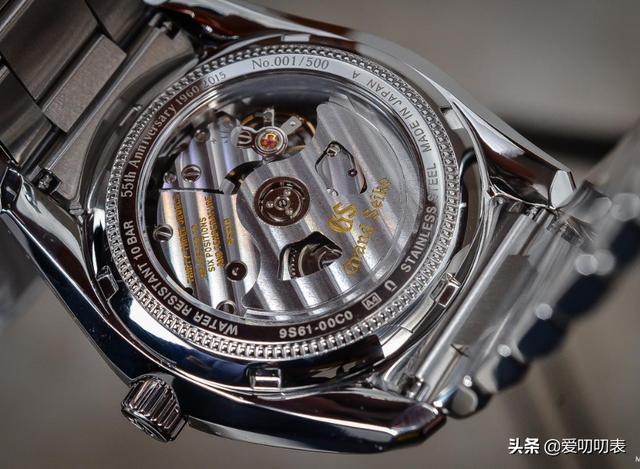在蓝宝石底盖的背后,我们找到了自动上链机芯9S61。该机芯不是高端和高拍频5Hz范围的一部分(例如Grand Seiko Hi-Beat 36000 GMT中的9S86 ),但它仍然是一个有趣且制作精良的机芯(当然,是开发,设计和生产的)内部)。它以更经典的4Hz频率运行,并拥有72小时的动力储备(3天)。这款9S61的精度为每天-3至+5秒,可以与COSC认证竞争。机芯的装饰就像手表的其余部分一样:非常干净,严肃。