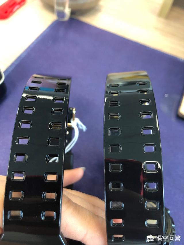 表扣内侧,可以看下标注着的是生产产地。假表的字体也非常模糊。 最后,表带。正品表带黑色非常纯正,而假表的表带颜色比较暗。 |