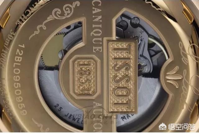 天梭这款表表盘尺寸为39.3mm,绝对是不挑人通用款,菱格纹黑色表盘搭配罗马数字刻度和经典大三针,特别的是在玫瑰金色表圈和牛皮表带,金色凸显成熟稳重的气质,别致的透底设计,天梭1853字样横亘表底。