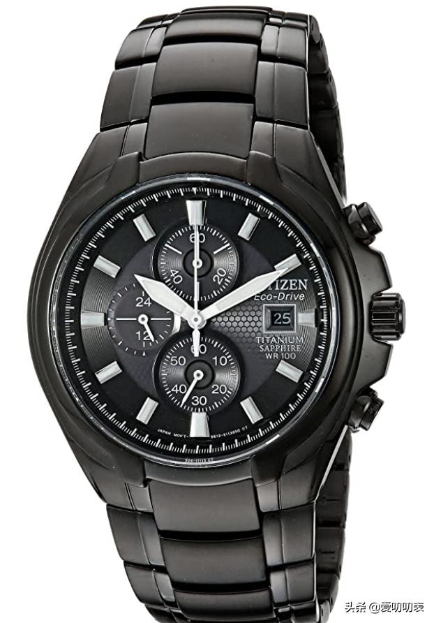 这款全黑手表具有12/24小时时间,3点钟位置的日期窗口以及发光的指针和标记。设计采用42毫米黑色离子板,坚固耐用,非常适合日常和休闲穿着。运动外观的手表,您也可以佩戴它上班。其他一些功能还包括一个按钮扣,长达100米的防水性。但是,钛金属表带不如不锈钢表带耐用。价格:$298.88