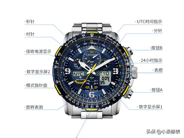 Citizen 光动能是由光供能,一款手表,从不需要电池,蓝宝石水晶,日本石英机芯,表壳直径:47 MM,防水深度可达660英尺。这款47毫米手表非常适合飞行员或旅行频繁的人使用。该款型在全球数十个城市中同步了时间调整。一些最佳功能包括精确的GPS功能,万年历,动力储存指示器,夏令时功能和200m防水性能。