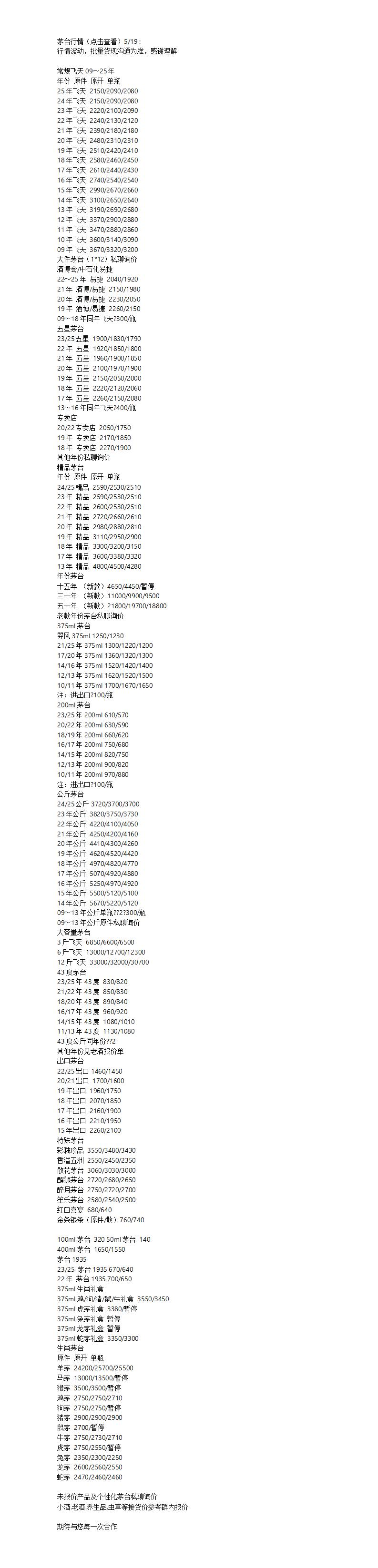 未报价产品及个性化茅台私聊询价