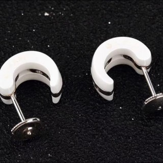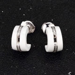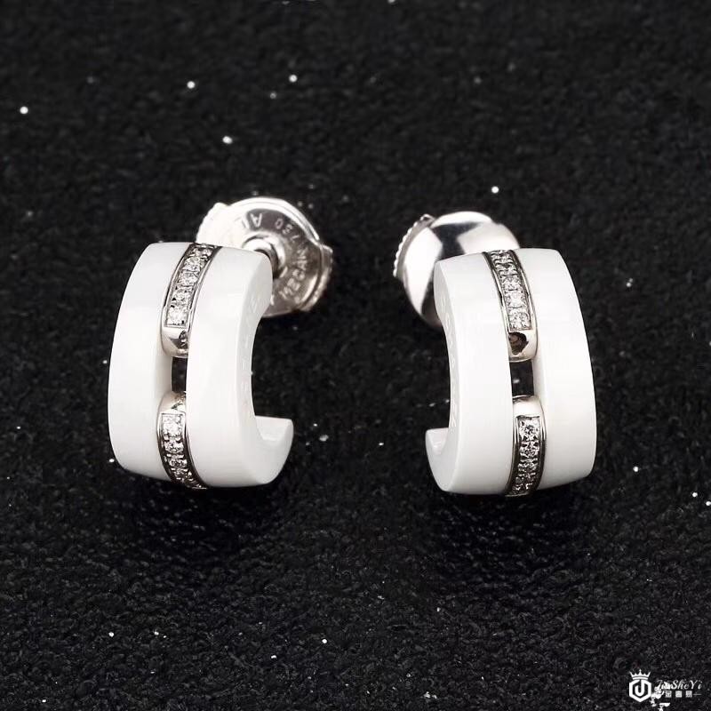 九九新CHANEL/香奈儿18K白金白陶瓷镶钻耳钉