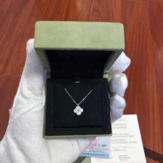 999新 vca 满钻 白金 mini 四叶草 项链 配件盒子 证书