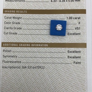 亿锦珠宝1克拉F色VS1 3EX F