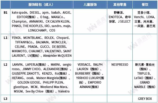 One ITC内品牌,赢商网不完全统计