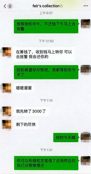 图说:查某与杨女士的聊天记录。徐汇警方供图