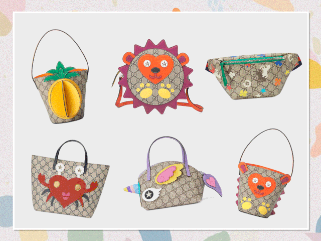 Gucci的儿童包几乎都是GG Supreme材质,搭配一些水果或者小动物的形象,颜色特别活泼。