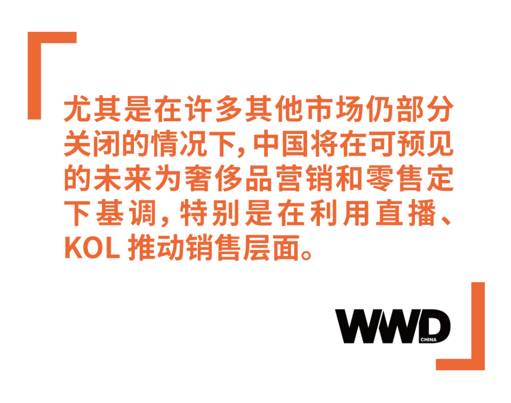 尤其是在许多其他市场仍部分关闭的情况下,中国将在可预见的未来为奢侈品营销和零售定下基调,特别是在利用直播、KOL 推动销售层面。