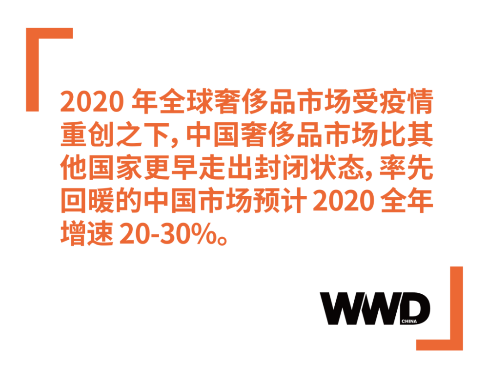 这一事实在波士顿咨询近期与腾讯联合发布的《中国奢侈品消费者数字行为洞察报告》中得到证实,2020 年全球奢侈品市场受疫情重创之下,中国奢侈品市场比其他国家更早走出封闭状态,率先回暖的中国市场预计 2020 全年增速 20-30%。